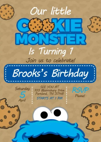 Get ready to celebrate your own little cookie monster’s big day! This adorable editable Cookie Monster Birthday Invitation template is the perfect way to announce a party that’s full of sweet treats and fun.