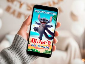 Say “Aloha” to the most exciting party of the year with this lovely Lilo and Stitch 2025 Birthday Video Invitation! Inspired by the new live-action movie, this animated invitation captures all the magic of Hawaii. Featuring beautiful beach scenes, lush palm leaves, and everyone’s favorite mischievous alien, Stitch, dancing to the classic “Hawaiian Roller Coaster Ride” soundtrack, this invite is the perfect start to a celebration full of fun, family, and adventure.
