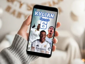 Hala Madrid! Score the winning goal for your child’s party with this champion-level Real Madrid Birthday Video Invitation. Perfect for the ultimate soccer fan, this animated invitation brings the excitement of the Santiago Bernabéu Stadium right to your guests. Featuring the club’s biggest superstars and the iconic “Hala Madrid” anthem, this invite sets the stage for a legendary football celebration.