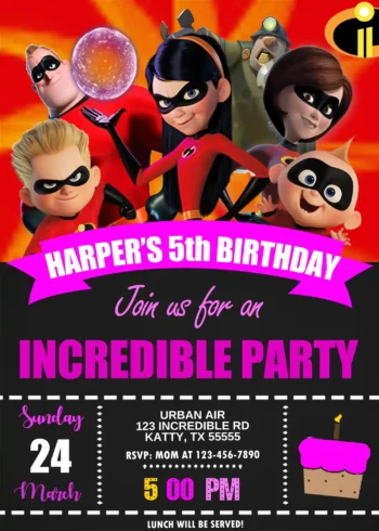 This The Incredibles 2 Violet Invitation is designed for little heroes who are ready for an adventure. It’s the ideal choice for: